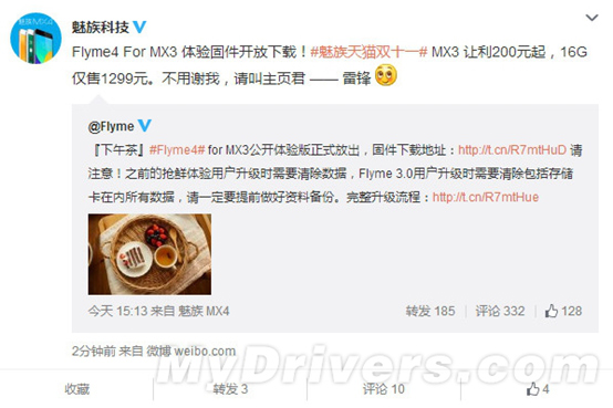 在发布MX4的时候,魅族同步推出了Flyme 4.0系统,当时承诺会给MX3用户升级,而现在,魅族兑现了自己的承诺。近日,魅族正式发布了适配于MX3的Flyme 4.0固件,具体版本号为Flyme 4.0.4A。由于还是体验版,所以可能存在诸多的问题,追求完美的用户暂时不要考虑。