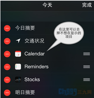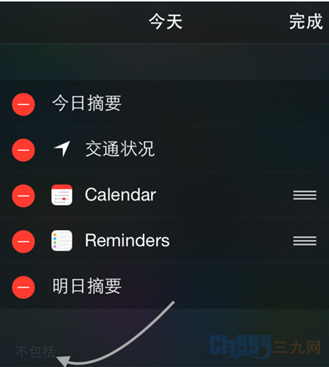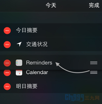 7.另外,如果我们想改变通知中心中项目显示的顺序,也可以在这里完成。用手指按住项目右侧的排序图标,直接向上向下拖动即可。