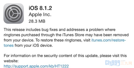 苹果在12月9号低调的发布了iOS 8.1.2的更新推送,被BUG折磨的小伙伴们赶紧去升级吧。iOS 8.1.2的发布十分突然,因为这个版本甚至都没有交付给开发者测试,就直接放出来了。不过这个版本也没有值得开发者注意的地方。这个版本主要就是修复了之前版本中存在的一些问题,比如下载的App Store铃声无故消失的问题等等还有其他一些零零碎碎的BUG。