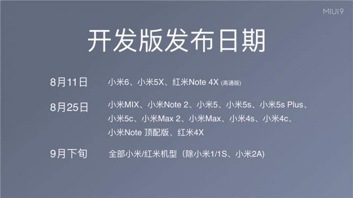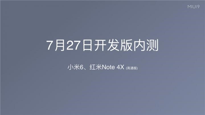 7月27日,率先在小米6、红米Note 4X(高通版)两款机型发布开发版内测。